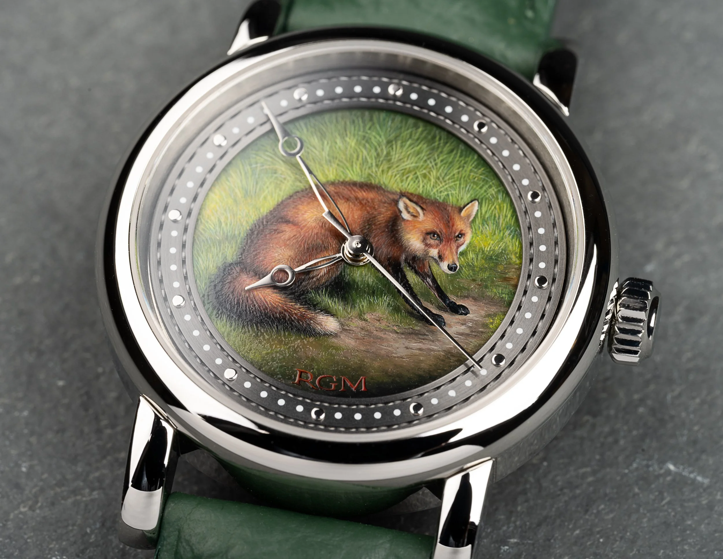 Customizations can range from the simple to the sublime. A "production model" RGM watch--the Ref. 151, for example--could be customized with a unique dial or a personalized engraved rotor. Such modifications represent the more cost-effective ways for an enthusiast to obtain a unique example of an already limited-production watch. However, for the wristwatch connoisseur who desires a truly unique piece, RGM can accommodate by creating a bespoke timepiece designed, built, and assembled in-house. From a custom-built time-only piece to a complicated watch with a perpetual calendar or tourbillon, RGM can accommodate a multitude of special requests. Consider engine-turning, real fired enamel, or many other old-world techniques.