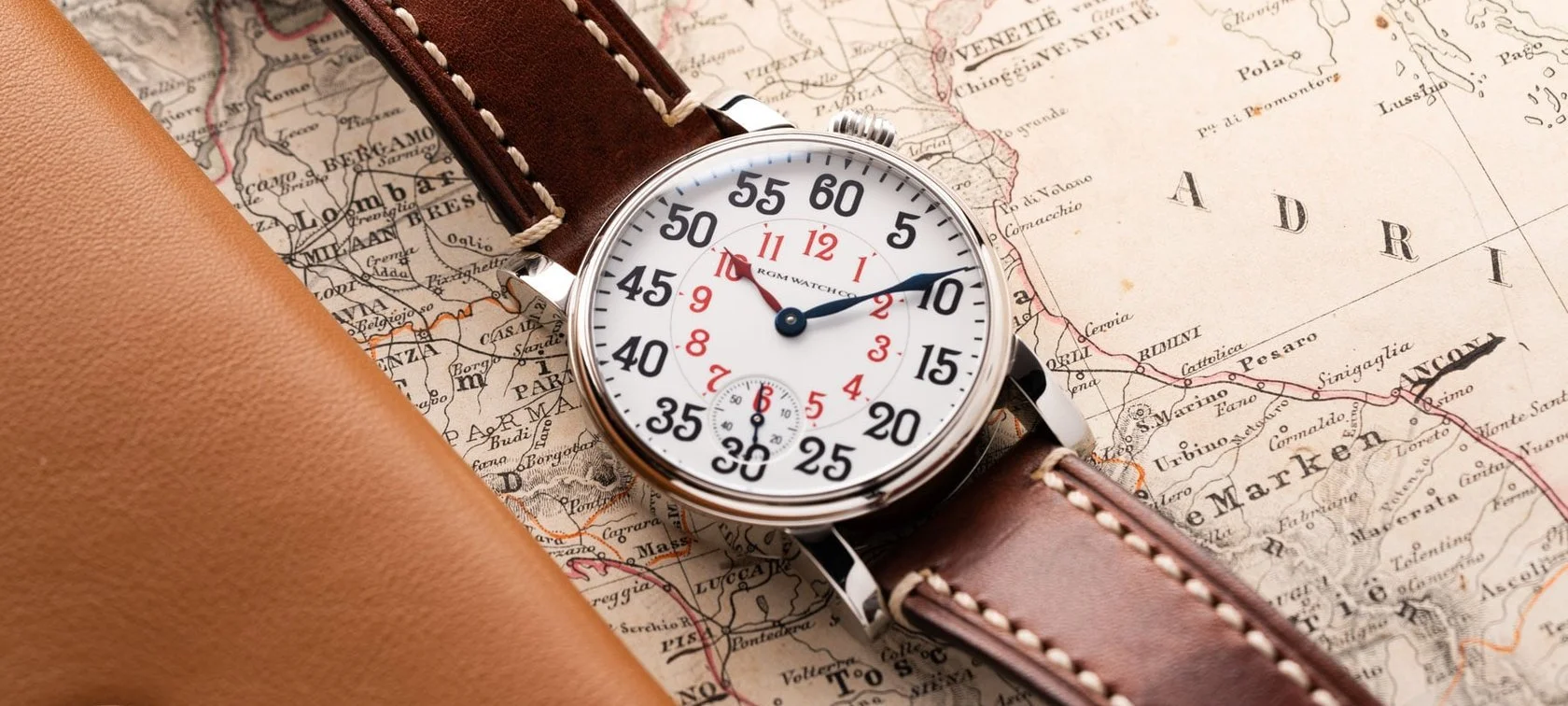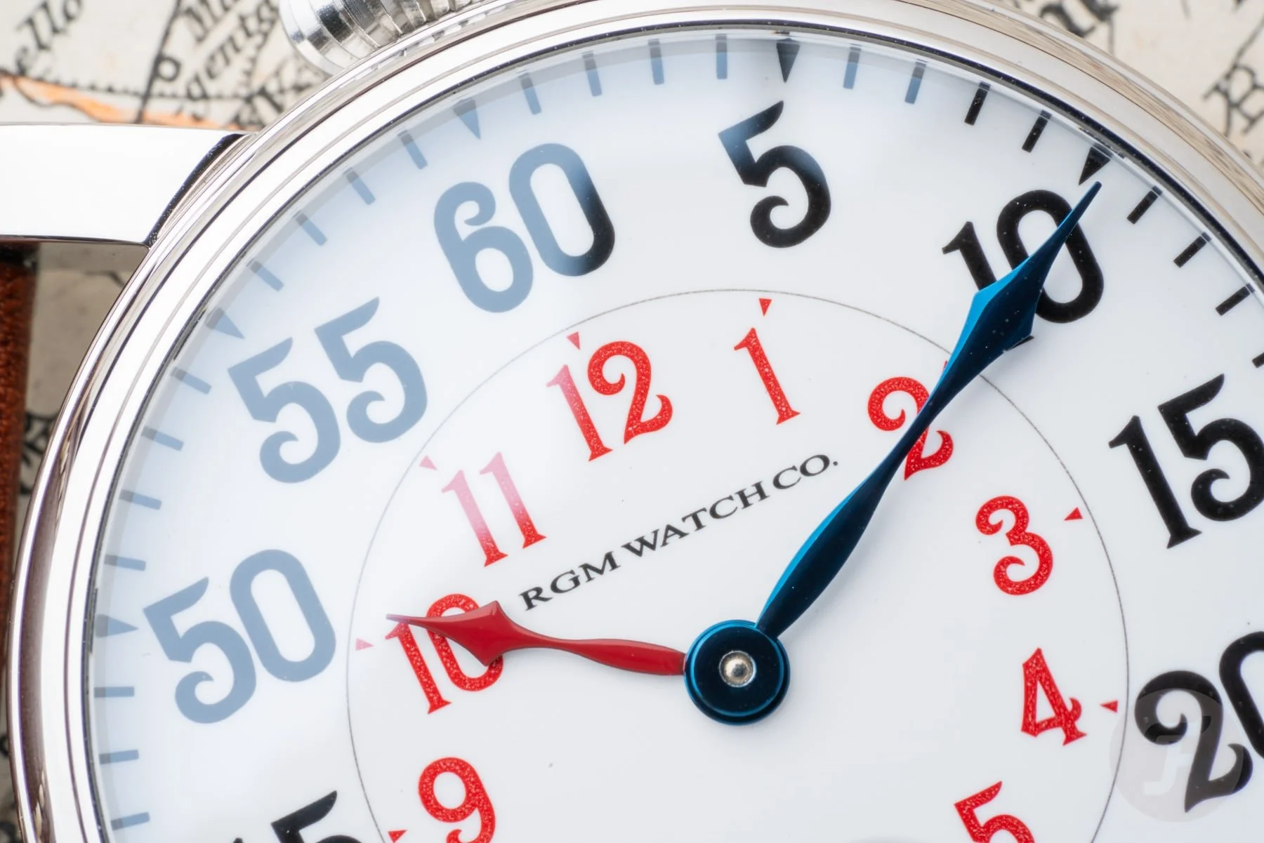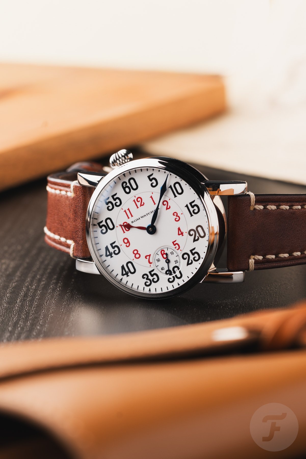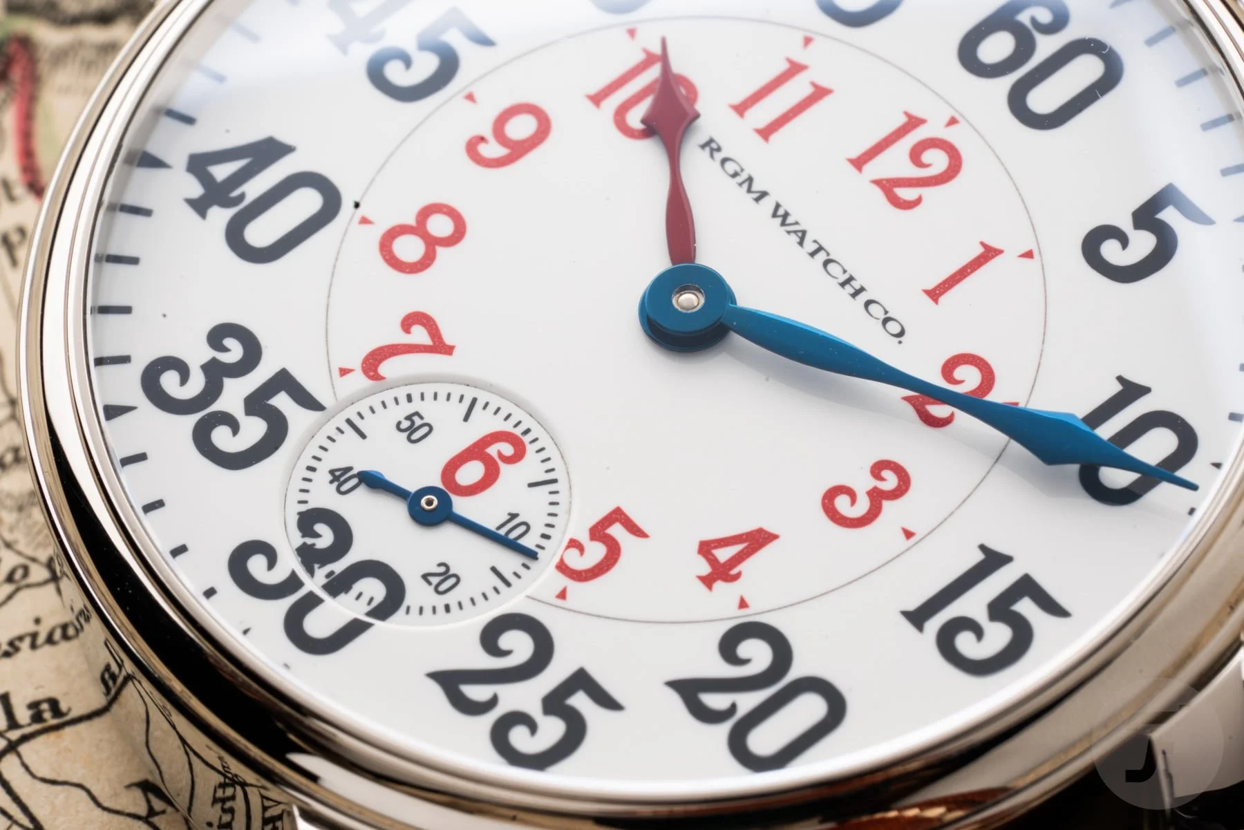 Roland G. Murphy founded RGM in 1992. Over the past three decades, this independent brand has gained a reputation for creating great timepieces powered by vintage calibers, crafted with great attention to detail, and linked to stories from history. Because Murphy often uses movements designed for pocket watches, RGM’s offerings are usually quite large. While this Model 222-RR looks pretty large, it isn’t necessarily oversized by modern standards. Thankfully, it also nicely embodies the classic railroad style.